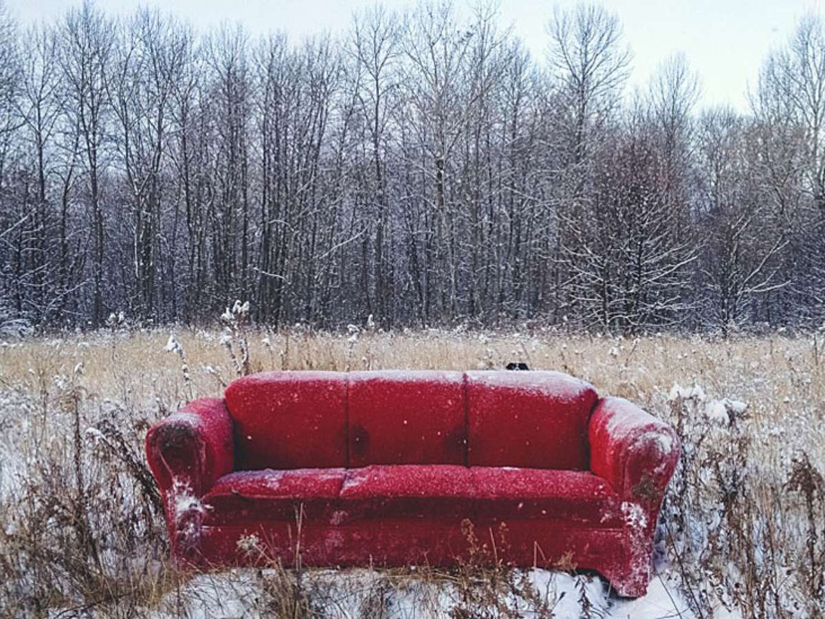 Knapp e Momo viajam juntos em uma perua e, nestas viagens, as fotos são feitas. Acima, Momo em Endicott, Nova York