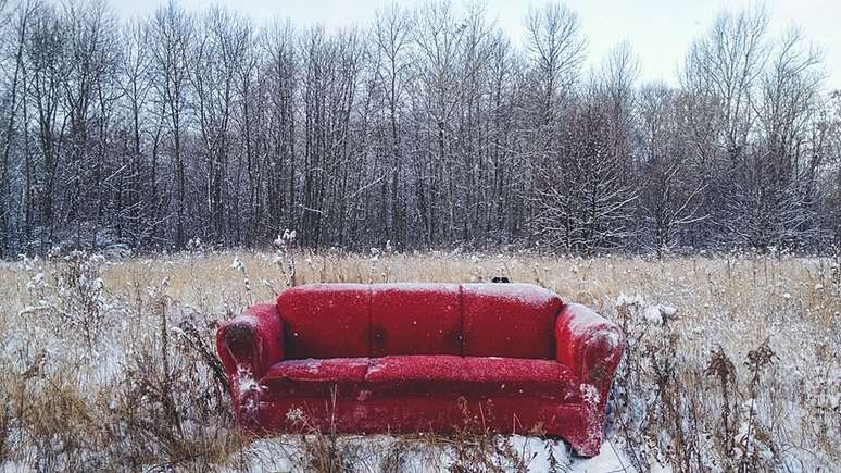 O fotógrafo canadense Andrew Knapp resolveu aproveitar o comportamento agitado de seu border collie Momo e fez fotos em que o cachorro se esconde em paisagens e ruas dos EUA e Canadá. Acima, Momo em Sudbury, Ontario, Canadá