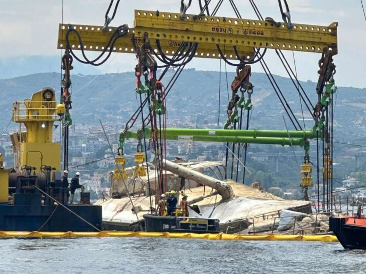O superiate Bayesian, cujo naufrágio deixou sete mortos em 19 de agosto de 2024, foi devolvido parcialmente à superfície nesta sexta-feira (20), graças a uma operação conduzida por guindastes na costa de Palermo, no sul da Itália.