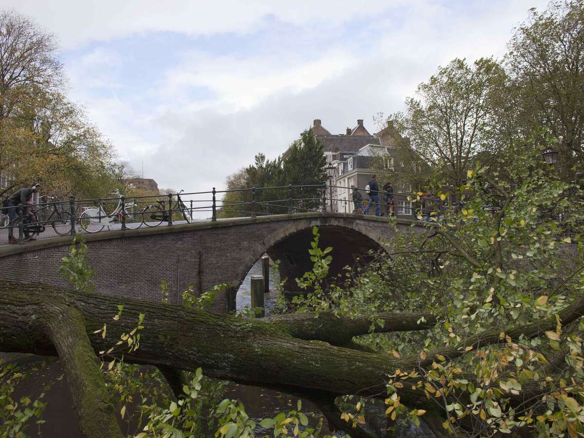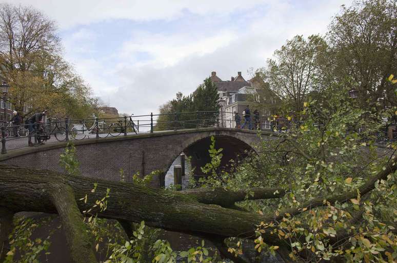 Ventos derrubaram árvore no canal Herengracht, em Amsterdã