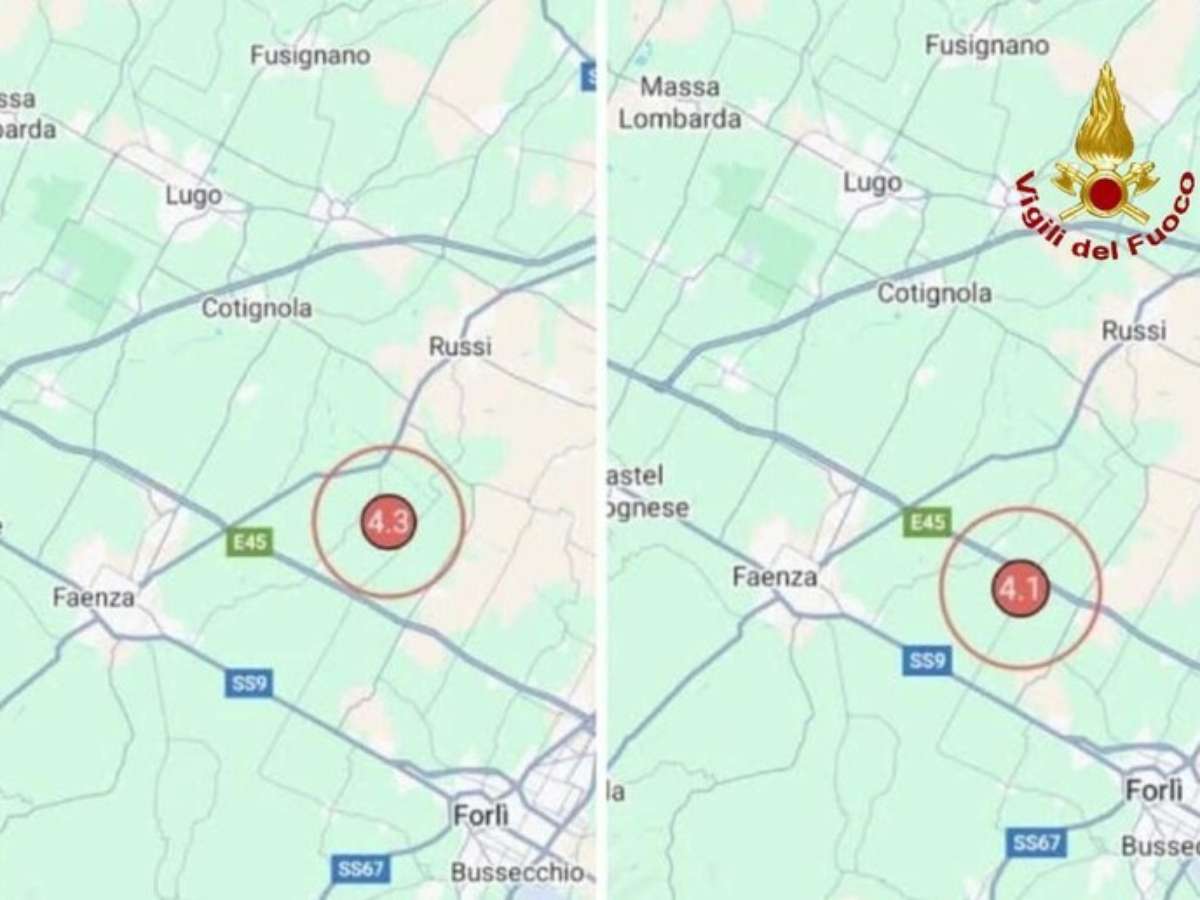 O primeiro tremor, de magnitude 4.3, teve epicentro a sete quilômetros de Russi, na província de Ravenna, e ocorreu a uma profundidade de 23 quilômetros, às 9h27 (horário local), segundo o Instituto Nacional de Geofísica e Vulcanologia (INGV).