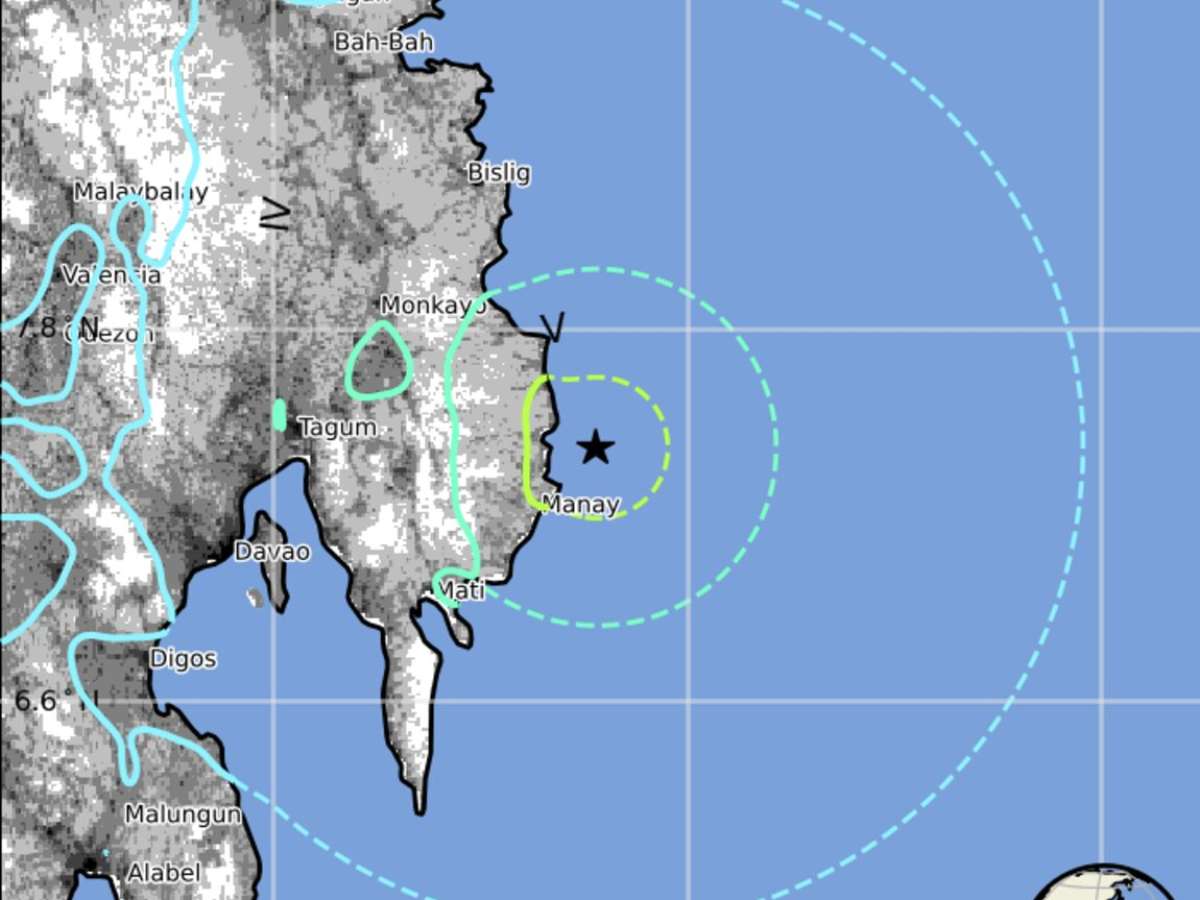 Em Baculin, San Pedro, Caraga, Baganga, San Rafael e San Luis o tremor apresentou intensidade forte. Nas demais cidades atingidas, o sismo variou moderado a fraco.