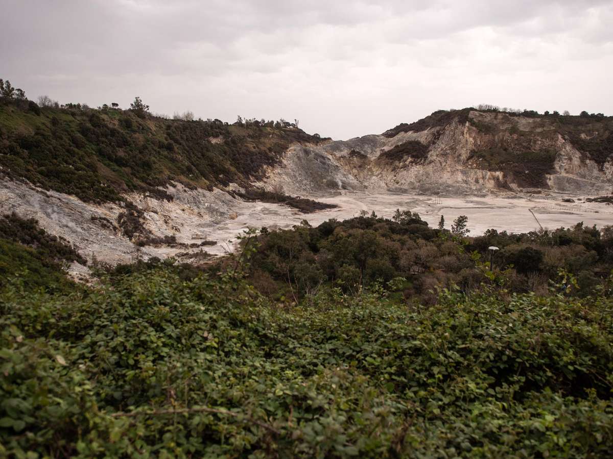 Diferentemente do vizinho Vesúvio, os Campi Flegrei não têm um vulcão principal, mas sim diversas crateras espalhadas por uma estrutura chamada "caldeira", ou seja, uma área rebaixada e relativamente circular que se formou devido à erosão causada por erupções passadas. .