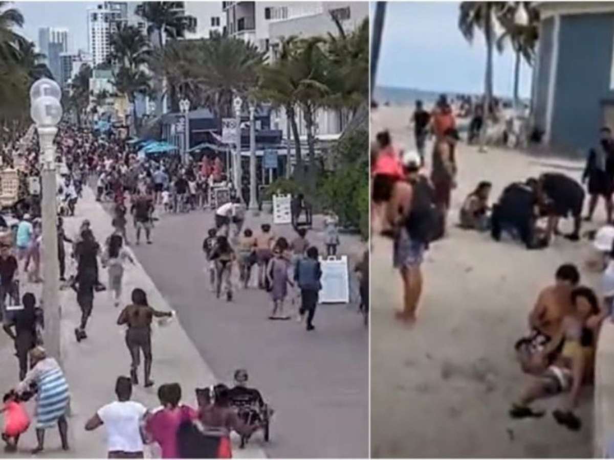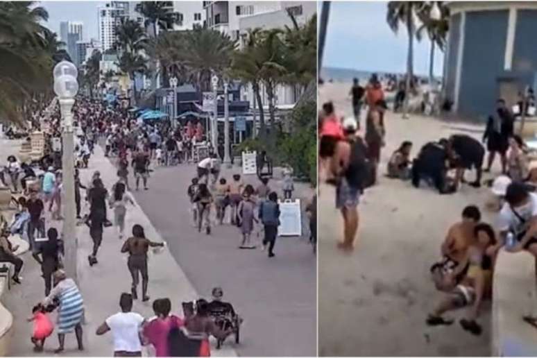 A praia em Miami estava cheia por causa do feriado do Memorial Day, que relembra a morte de soldados norte-americanos em guerras. Imagens que circulam pelas redes sociais mostram pessoas correndo pela praia e por um calçadão.