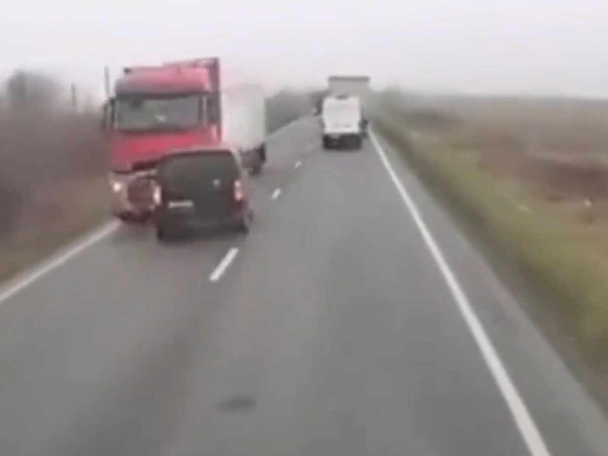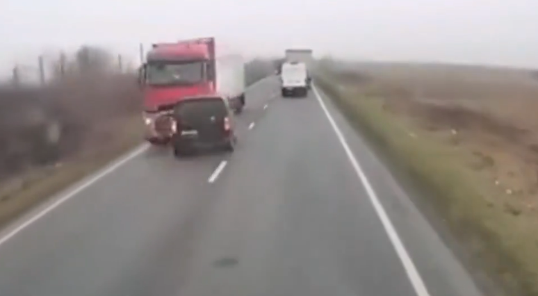 Imagens publicadas nas redes sociais, gravadas de um veículo que flagrou o acidente, mostram o momento em que o micro-ônibus atravessa a faixa central da pista, invade o sentido contrário e colide contra o caminhão.