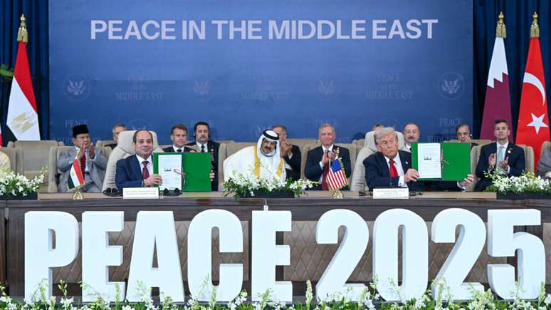O presidente dos Estados Unidos, Donald Trump, proclamou nesta segunda-feira (13) a "paz no Oriente Médio" após assinar, junto aos líderes do Egito, Catar e Turquia, um acordo para encerrar a guerra em Gaza. O líder norte-americano participou de uma cúpula em Sharm el-Sheikh, no Egito, onde mediadores internacionais assinaram uma declaração que visa garantir o cessar-fogo na região. O chefe da Casa Branca afirmou que "finalmente temos paz no Oriente Médio" e destacou que a negociação foi uma conquista considerada impossível por muitos.
