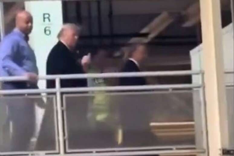 Visivelmente irritado, Trump para, aponta o dedo para alguém que não aparece na filmagem e parece dizer: "Fuck you" ("vai se foder"), dá mais alguns passos e, em seguida, mostra o dedo do meio, antes de seguir adiante.