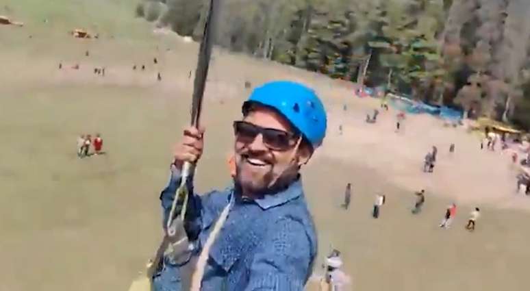 @user61110wagnermendonca Homem na Tirolesa, filma com bastão de selfie sem saber que abaixo dele estava acontecendo o ataque terrorista em Pahalgam na Índia, na semana passada, resultando em 26 mortes e 20 feridos.