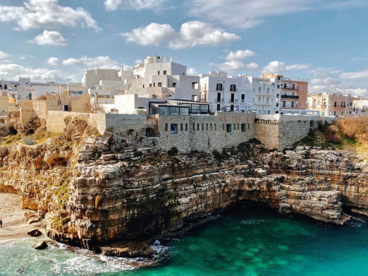 Polignano a Mare é um concorrido destino de verão no sul da Itália, sobretudo por conta de suas paisagens caracterizadas por penhascos à beira-mar, de onde turistas mais ousados costumam mergulhar na água.