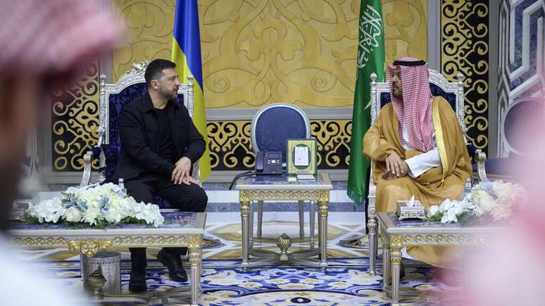 Zelensky espera obter apoio dos países do Golfo na guerra travada pela Ucrânia contra a Rússia, em um momento em que a ajuda militar ocidental enfrenta novas incertezas e Kiev busca recursos para cobrir seu déficit orçamentário e financiar sua produção de armas.