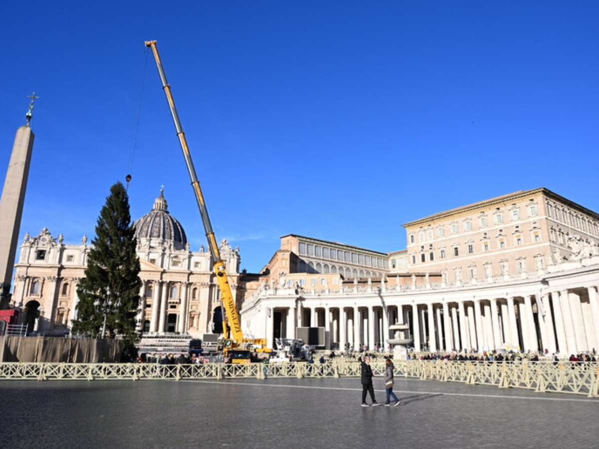 Vaticano ergue árvore de Natal na Praça São Pedro