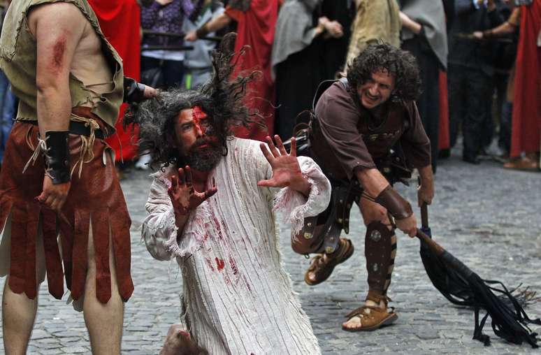 PUBLICIDADE Capa Notícias Mundo Mundo Estados Unidos América Latina Oriente Médio Europa Ásia África Veja fotos de encenações da Paixão de Cristo pelo mundo Devotos encenam os últimos momentos de Jesus Cristo Compartilhar Encenação dos últimos momentos de Jesus Cristo na Romênia Foto: Reuters Encenação da crucificação de Jesus Cristo na Alemanha Foto: Reuters Menino vestido como um soldado romano durante encenação da Via Sacra na Costa Rica Foto: Reuters Ator faz o papel de Jesus Cristo crucificado na Costa do Marfim Foto: Reuters Fiéis se reúnem em oração numa praia de Valência, na Espanha Foto: Reuters Penitente tem mão pregada a uma cruz nas Filipinas Foto: Reuters Cristãos dão as mãos durante a procissão da Via Sacra em Jerusalém, em Israel Foto: Reuters Encenação da crucificação de Jesus Cristo no Líbano Foto: Reuters Devotos carregam cruzes no México Foto: Reuters Ator encena o papel de Jesus Cristo na Nicarágua Foto: Reuters Homem preso a uma cruz na Nigéria Foto: Reuters Pessoas participam da Cerimônia do Caminho da Cruz na Ponte do Brooklin, em Nova York Foto: Reuters Soldado romano usa chicote em Jesus Cristo em encenação da Via Sacra no Peru Foto: Reuters Multidão acompanha encenação de Jesus Cristo carregando a cruz acompanhado por soldados romanos na Polônia Foto: Reuters Encenação dos últimos momentos de Jesus Cristo na Romênia Foto: Reuters Homem rezando no papel de Jesus Cristo em Trinidade e Tobago Foto: Reuters Compartilhar Publicidade Compartilhar TAGS Mundo Notícias Publicidade
