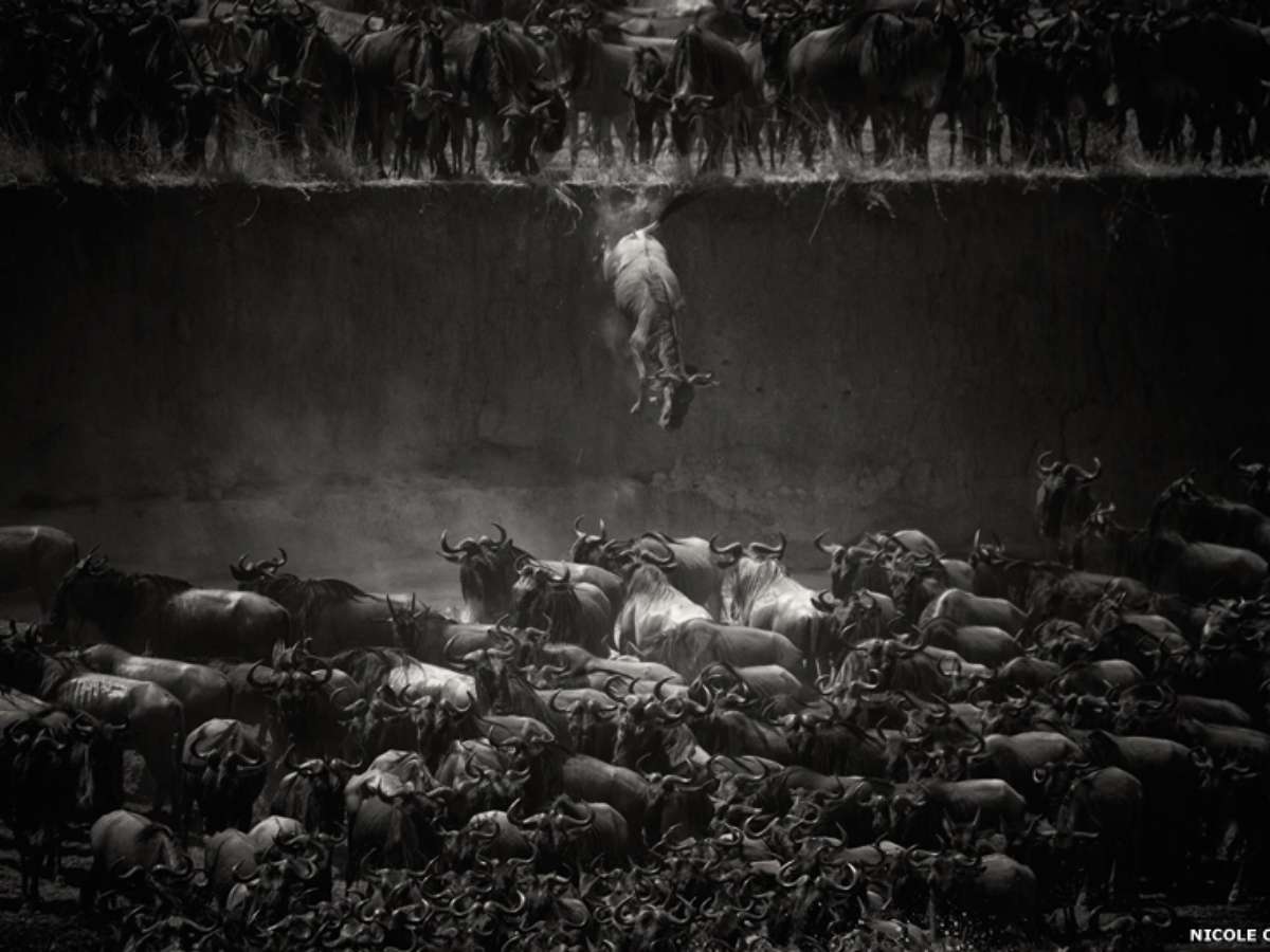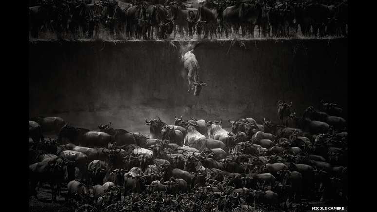 Entre as fotos de natureza, Nicole Cambré venceu com esta imagem de antílopes no rio Mara, na Tanzânia