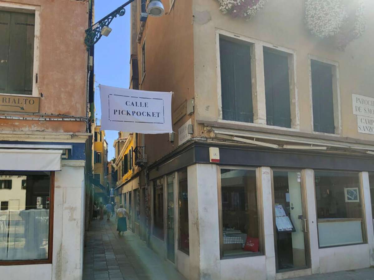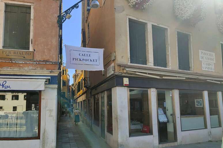 Uma faixa com os dizeres "Rua dos Pickpockets" apareceu em uma via do centro histórico de Veneza, joia turística da Itália, para protestar contra a atuação de batedores de carteira na cidade.