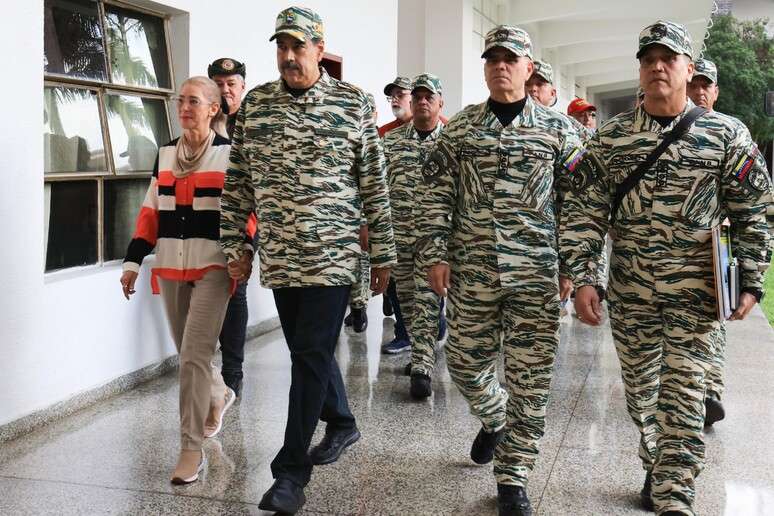 Ao lado do ministro da Defesa, Vladimir Padrino López, o chefe de Estado proclamou que "os mares, as terras e as montanhas pertencem ao povo venezuelano e jamais ao império norte-americano".