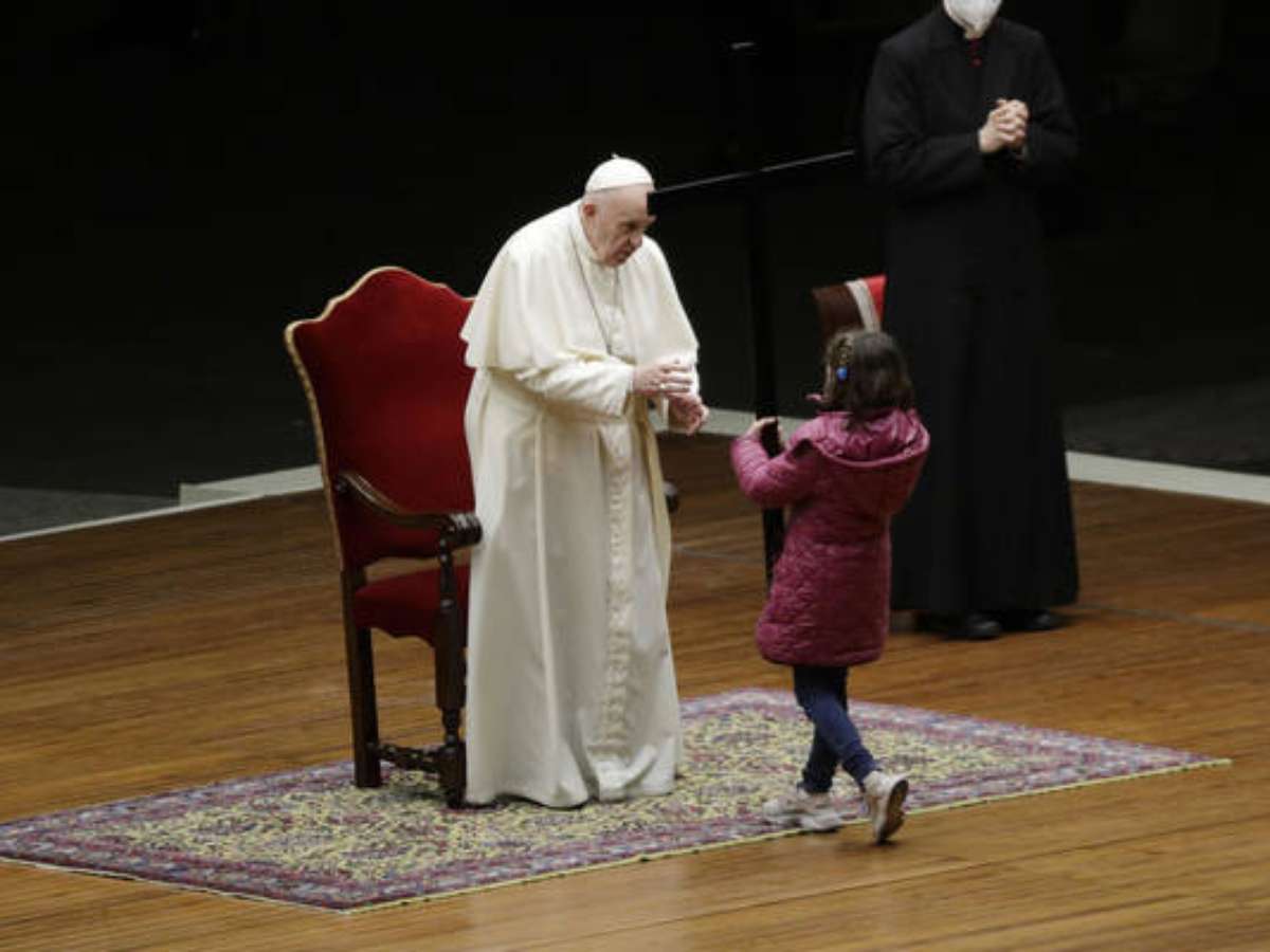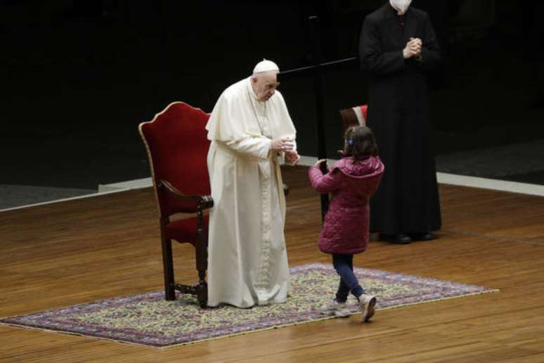 Ao fim da cerimônia, Francisco foi abraçado por crianças e adolescentes que participaram da celebração.
