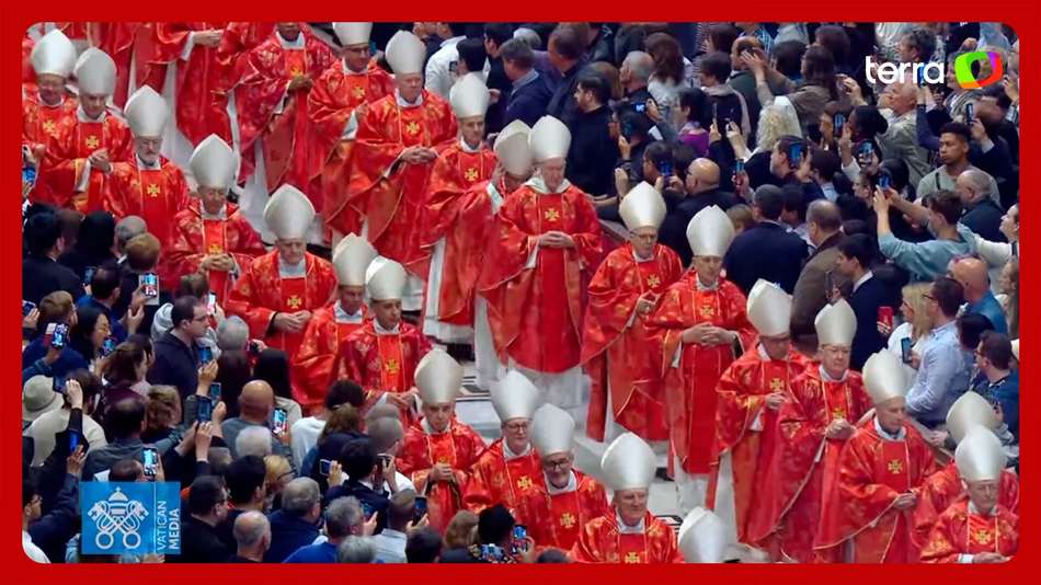 Cardeais eleitores formam ‘corredor vermelho’ em missa de abertura do conclave. As imagens foram registradas na manhã desta quarta-feira, 7, na Basílica de São Pedro. A missa Pro Eligendo Pontifice representa a solenidade que abre as cerimônias de eleição para o novo papa. Esta foi a última aparição pública dos cardeais eleitores antes do momento de reclusão para o conclave. A primeira votação deve ocorrer ainda nesta quarta-feira, a partir das 14h pelo horário de Brasília. Reprodução/Vatican News/Youtube