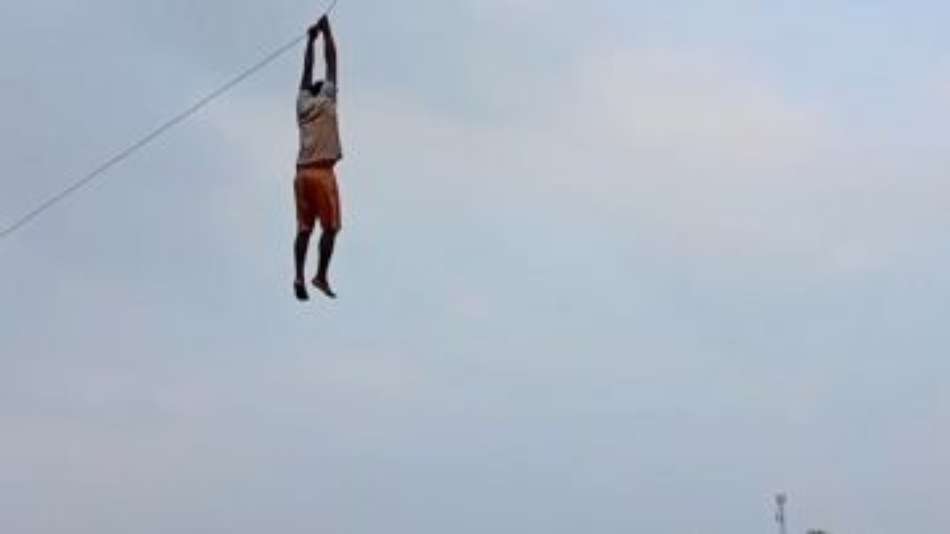 Carregado por pipa, homem fica pendurado a 12 metros de chão