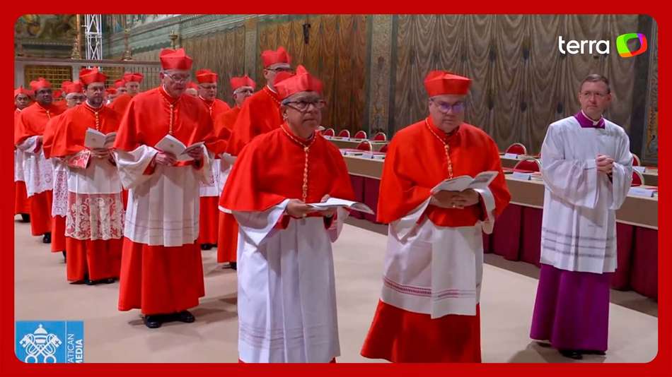 Conclave: cardeais eleitores fazem procissão em direção à Capela Sistina para primeira votação. O grupo formado pelos 133 cardeais que definirão o novo líder da Igreja Católica protagonizou a tradicional caminhada para o local de votação. A série de reuniões fechadas para definir quem será o novo papa teve início nesta quarta-feira, 7, com a missa Pro eligendo Pontifice, na Basílica de São Pedro. A fumaça com o resultado do primeiro turno da votação que elegerá o próximo papa ocorrerá por volta das 14h, no horário de Brasília. Reprodução/Vatican News/Youtube