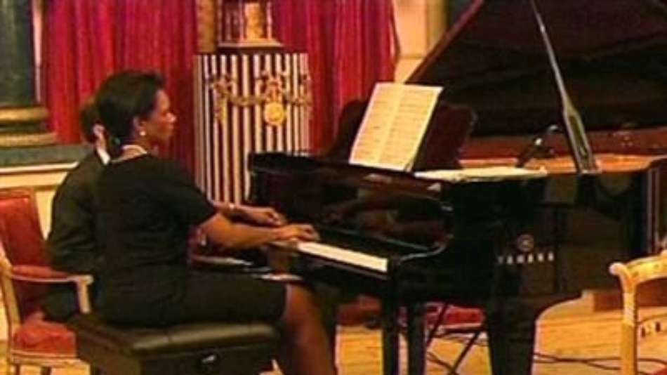 Mundo Condoleezza Rice toca piano para a rainha Exibir comentários Compartilhar Secretária de Estado americana ofereceu a apresentação à Elizabeth II como um gesto de despedida, já que deixa cargo em 2009 Reuters Publicidade