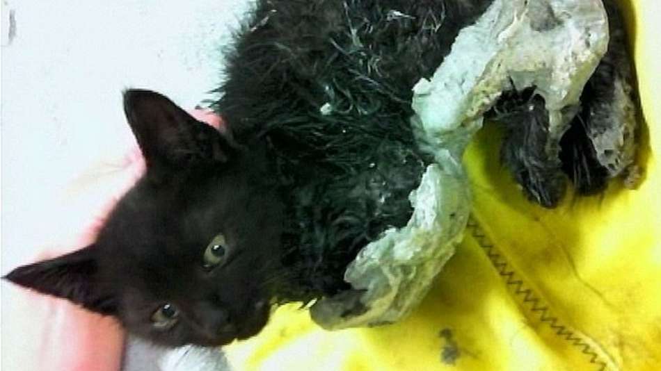 Mundo Gato sobrevive após ficar grudado por cola industrial Exibir comentários Compartilhar Animal foi encontrado colado ao chão de um estacionamento em cidade do Oregon, nos EUA CNN Publicidade