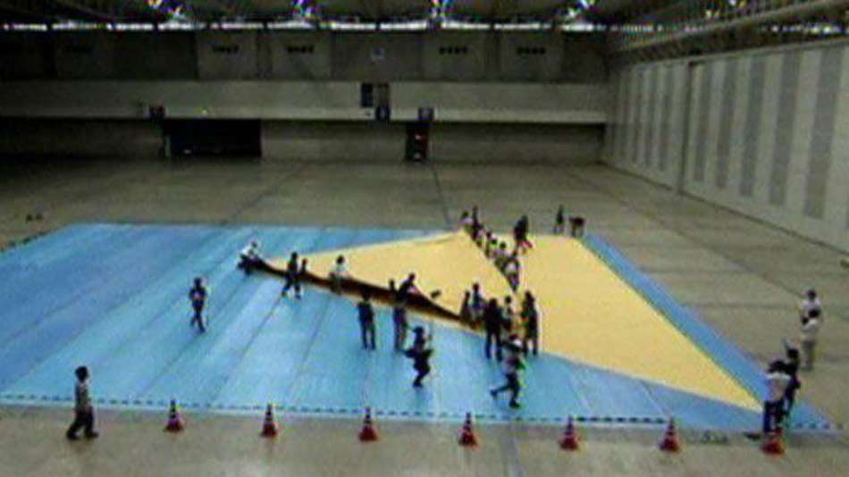 Mundo Grupo faz origami gigante no Japão Exibir comentários Compartilhar Folha para a dobradura de um dinossauro tinha 25 mil metros quadrados; adultos e crianças participaram da confecção Reuters Publicidade
