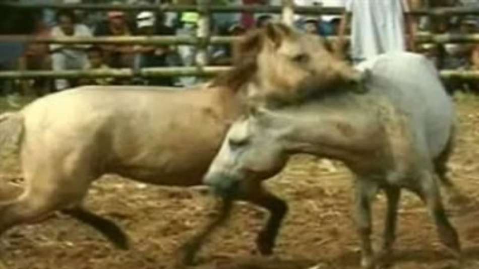 Mundo Imagens de briga de cavalos chocam ativistas Exibir comentários Compartilhar Grupo britânico foi às Filipinas e filmou festival de 3 dias em que animais se enfrentam enquanto espectadores fazem apostas AP Publicidade