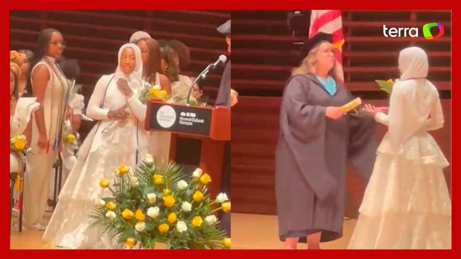 Uma estudante foi impedida de receber o diploma de graduação após dançar em cerimônia da Philadelphia High School for Girls, nos Estados Unidos. Ao ser anunciada, Hafsah Abdur-Rahman foi dançando para buscar seu diploma e parte da plateia riu e se animou com o gesto. Ao chegar do outro lado do palco a diretora não permitiu que ela pegasse o diploma. Segundo a estudante, mais três jovens receberam o diploma após a cerimônia por outros motivos. O distrito escolar pediu desculpas pelo ocorrido e afirmou que não existe uma regra que impeça estudantes de receber diplomas por ter feito famílias e amigos gritarem em apoio. Veja momento no vídeo.