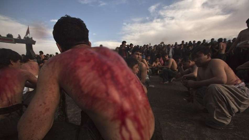 Mundo Jovens xiitas se autoflagelam para celebrar Ashura Exibir comentários Compartilhar Muçulmanos realizam ritual sangrento para lembrar a morte do imã Hussein, neto do profeta Maomé Reuters Publicidade