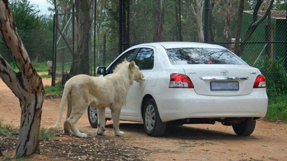 Mundo Leão abre porta de carro em safári na África do Sul Exibir comentários Compartilhar Ousadia do animal foi registrada por um turista britânico que estava com a família no parque Redação Terra Publicidade