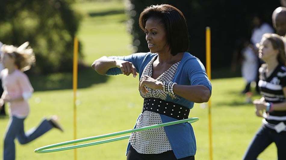 Mundo Michelle Obama roda bambolê 142 vezes sem errar Exibir comentários Compartilhar Primeira-dama dos EUA brincou com crianças em um evento sobre saúde na Casa Branca Reuters Publicidade