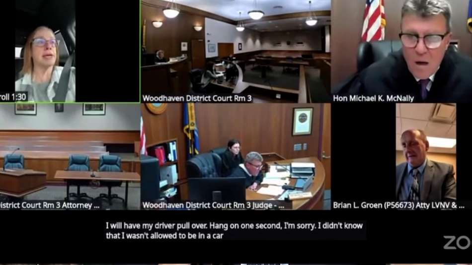 O caso ocorreu durante um julgamento virtual no estado de Michigan, quando uma participante chamou atenção ao entrar na audiência aparentemente dirigindo. A ré, Kimberly Carroll, negou estar ao volante, mas foi desmentida ao sair do carro pelo lado do motorista diante do juiz Michael K. McNally. Em razão da mentira, o magistrado recusou ouvi-la e deu vitória à empresa LVMV Funding; Carroll foi condenada a pagar US$ 1.921,85, além das custas do processo.