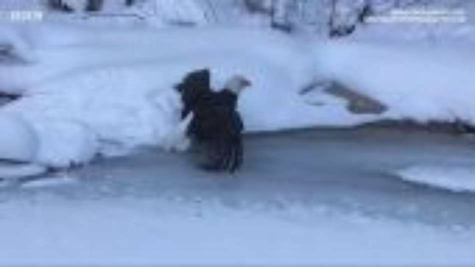 Os animais também foram atingidos pela onda de frio que atinge o meio oeste dos EUA. Essa águia-americana não está se refrescando, está congelada e não consegue voar. A ave de rapina tem uma bola de gelo presa às suas penas que a impede de levantar voo. Felizmente, ela conseguiu ajuda nesse santuário animal no Estado do Michigan. Um enxágue rápido com água morna e a bola de gelo de 20 cm foi derretida. A equipe de resgate acredita que a ave se molhou tentando pegar um peixe em um lago e depois acabou ficando congelada no tempo frio. Livre do gelo, a águia foi devolvida à natureza.