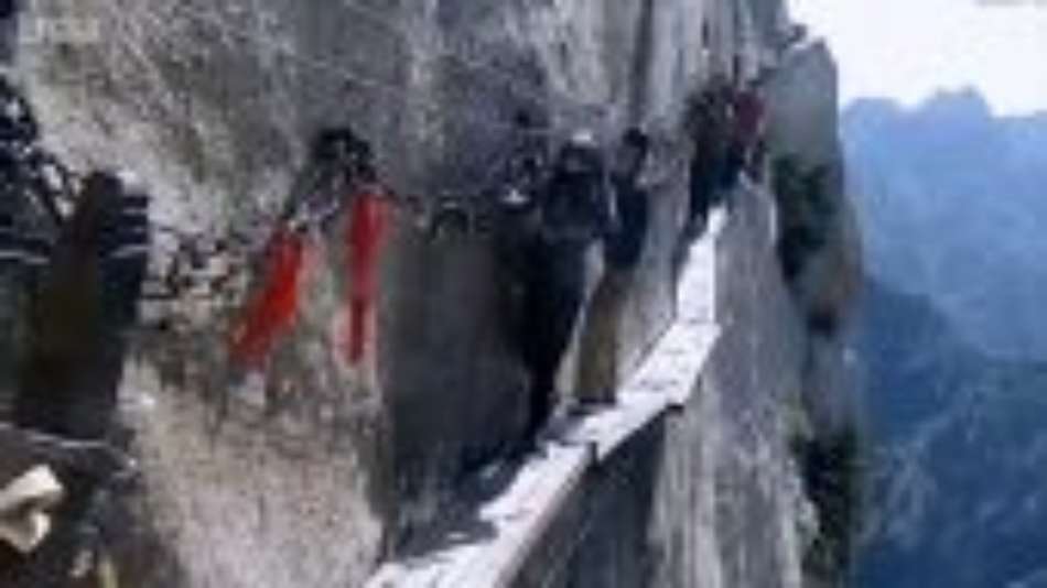 Mundo Operários consertam 'trilha mais perigosa do mundo' a 2 mil metros de altura Exibir comentários Compartilhar Reparos aconteceram no Monte Huashan, no noroeste da China. BBC News Brasil Publicidade