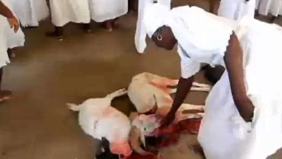 Mundo Páscoa tem vodu e sacrifício de animais no Haiti Exibir comentários Compartilhar Vestidos de branco, fiéis da ilha participam de ritual de sacrifício e usam sangue para molhar língua e sujar roupas AFP Publicidade