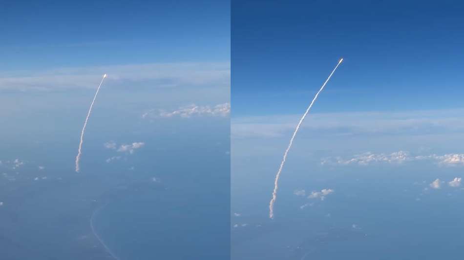 Passageira filma lançamento do foguete Artemis II da janela de avião