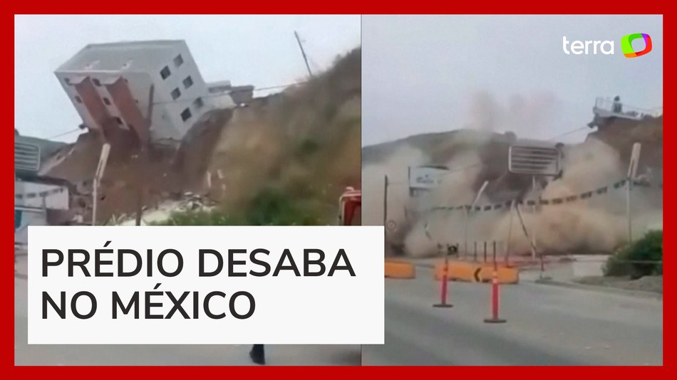 Prédio desaba e 'rola' após deslizamento de terra no México