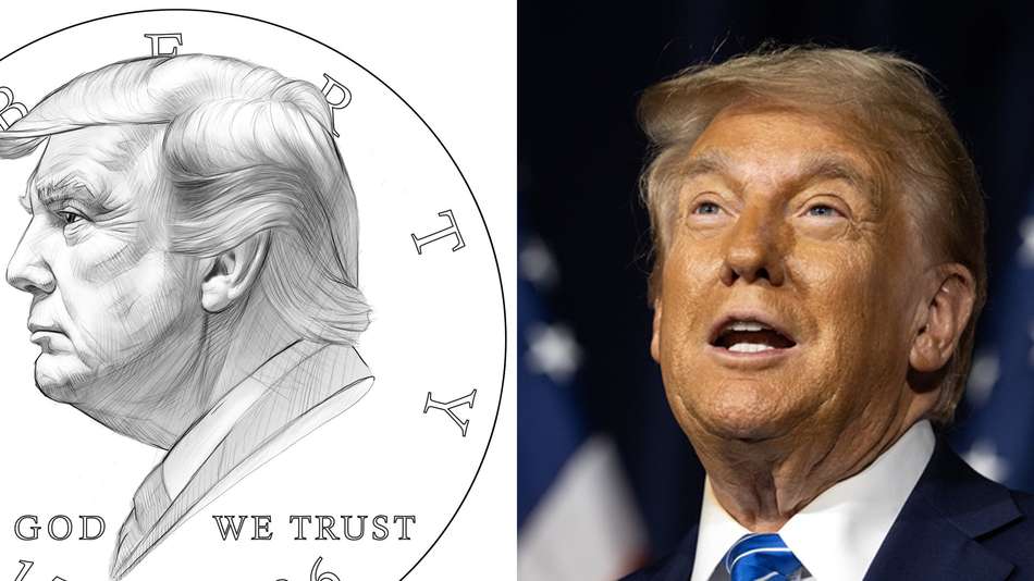 O Departamento do Tesouro dos Estados Unidos apresentou uma proposta de moeda comemorativa para as celebrações dos 250 anos da independência norte-americana em 2026. O projeto pretende ter uma face da moeda com o perfil de Trump com a palavra "Liberdade" acima da imagem e as datas "1776-2026" abaixo do retrato. "Não há fake news aqui. Esses primeiros rascunhos para honrar o aniversário de 250 anos da América e o presidente Donald Trump são reais”, confirmou o secretário do Tesouro Brandon Beach. O outro lado da moeda apresenta o republicano com o punho cerrado erguido, acompanhado da expressão "Lute, lute, lute". Imagens: Reprodução/X e Anna Moneymaker, Jim Vondruska/GettyImages e Reuters