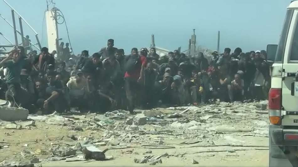 Vídeo mostra multidão de palestinos correndo em direção a comboio da ONU em busca de comida. A cena, que foi registrada perto de Kerem Shalom na quarta-feira, 30, foi divulgada pelo Escritório das Nações Unidas para a Coordenação de Assuntos Humanitários (OCHA). Além da terrível situação, soldados de Israel disparavam tiros de advertência a poucos centímetros da multidão, que buscava desesperada por algum alimento. Pelo menos uma pessoa ficou ferida e recebeu atendimento médico com a ajuda de funcionários da ONU, informou o escritório das Nações Unidas na publicação. Olga Cherevko, porta-voz do Escritório, também reclamou que foi preciso esperar mais de duas horas até que Israel autorizasse o transporte dos alimentos na Faixa de Gaza. Imagens: Reprodução/un_ocha/Instagram