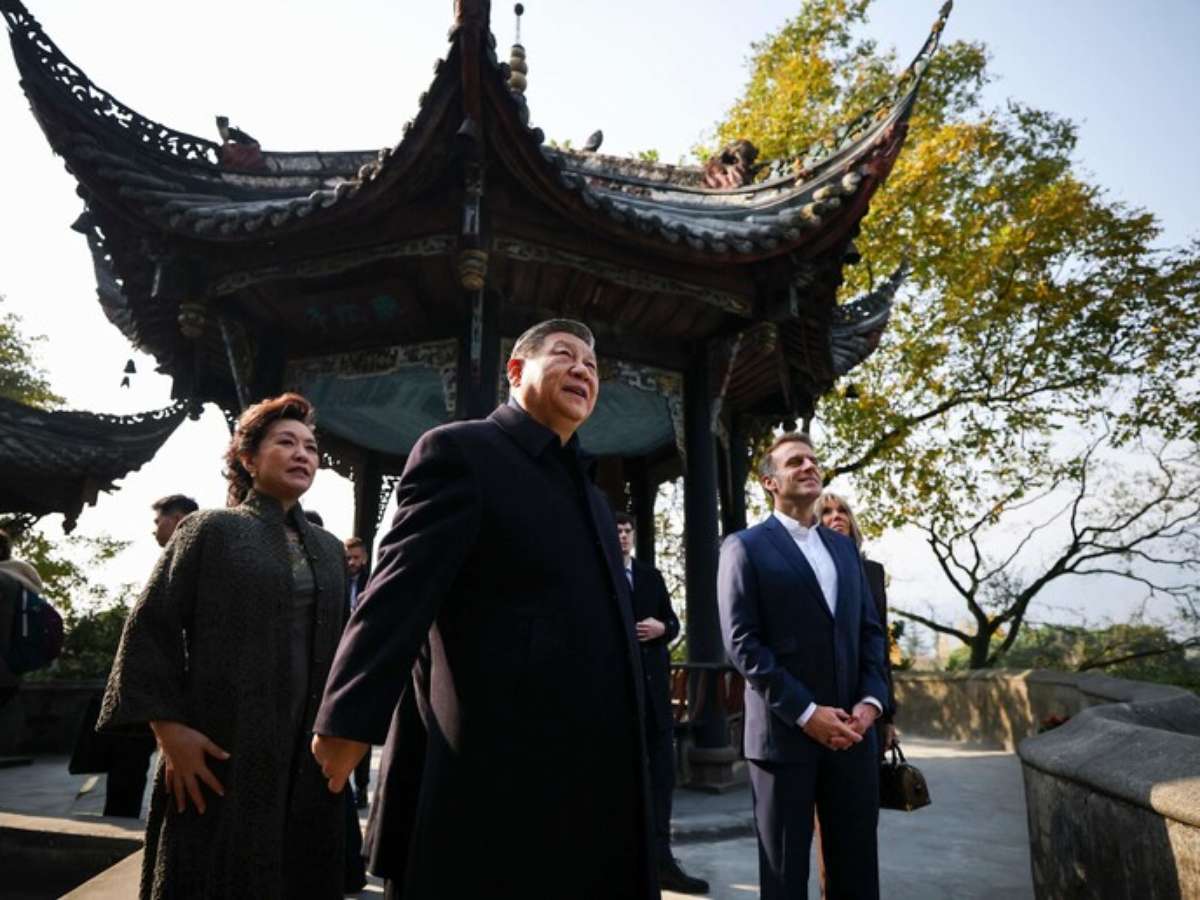 Esta é a última etapa da quarta visita de Macron à China e ocorre um dia após a reunião oficial com Xi no Grande Salão do Povo, em Pequim.