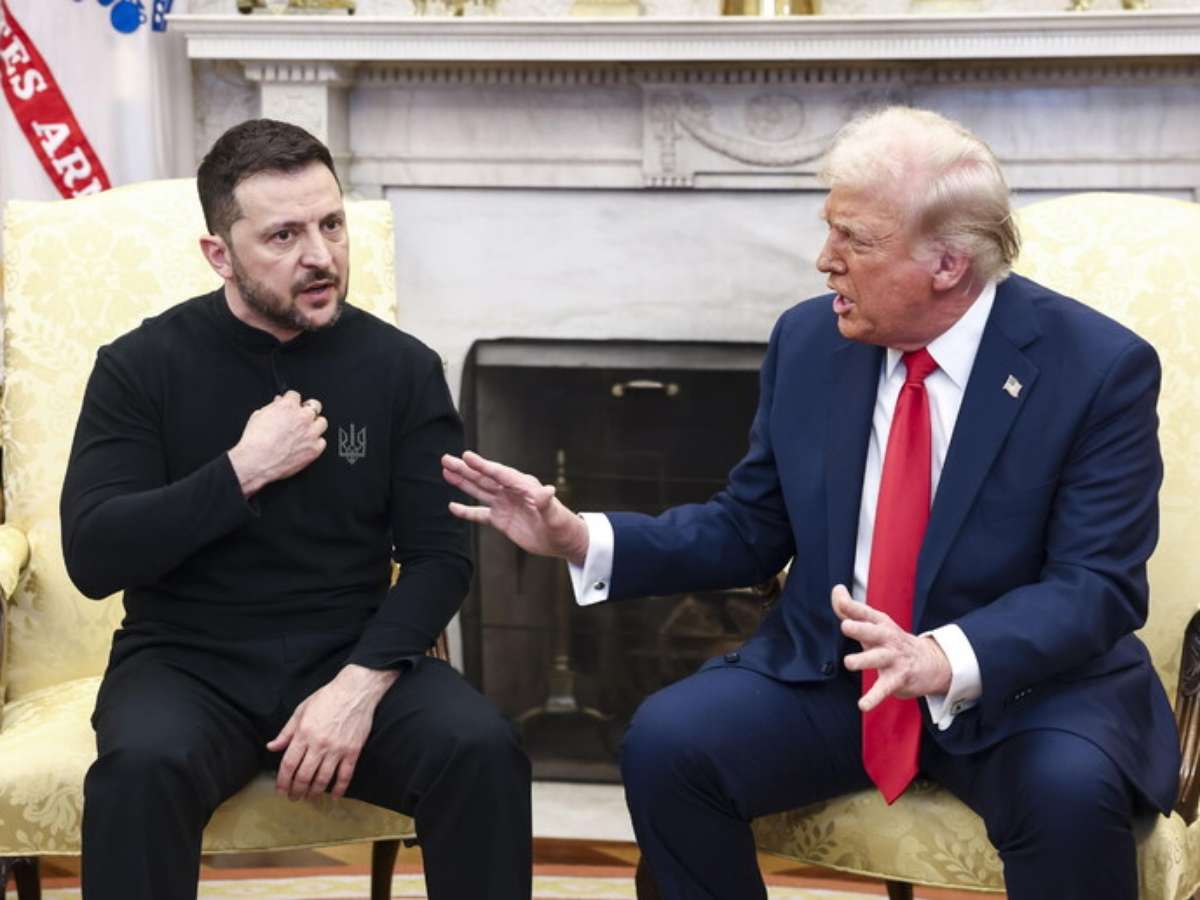 Seis meses após ter sido humilhado pelo magnata americano diante de câmeras de TV do mundo todo, Zelensky volta à Casa Branca acompanhado de sete líderes europeus: os premiês da Itália, Giorgia Meloni, e do Reino Unido, Keir Starmer, o chanceler da Alemanha, Friedrich Merz, os presidentes da Comissão Europeia, Ursula von der Leyen, da França, Emmanuel Macron, e da Finlândia, Alexander Stubb, e o secretário-geral da Organização do Tratado do Atlântico Norte (Otan), Mark Rutte.