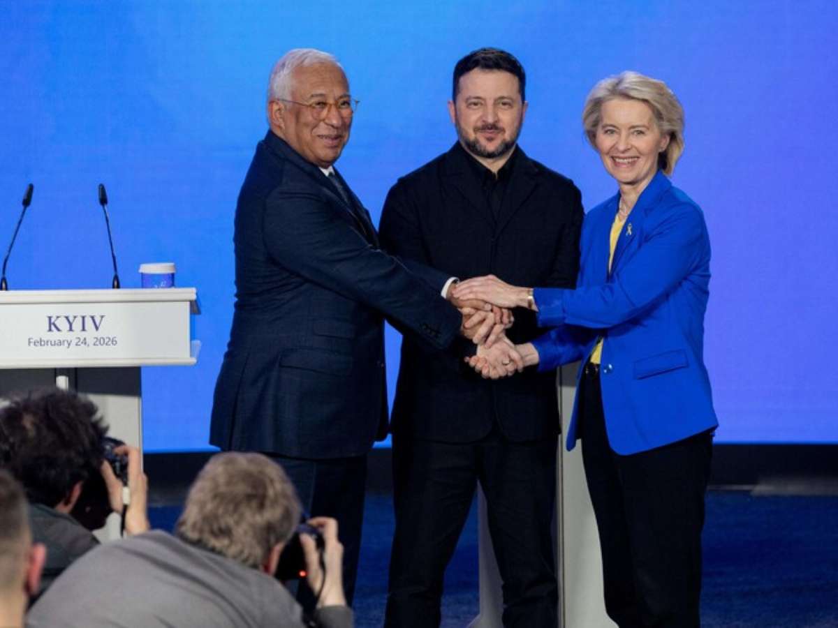 "Ter uma data clara para a adesão da Ucrânia à União Europeia, como 2027, é muito importante para nós, e espero que seja factível", declarou Zelensky em uma coletiva de imprensa ao lado de representantes da UE, incluindo Von der Leyen, em Kiev, no âmbito do quarto aniversário da invasão russa.