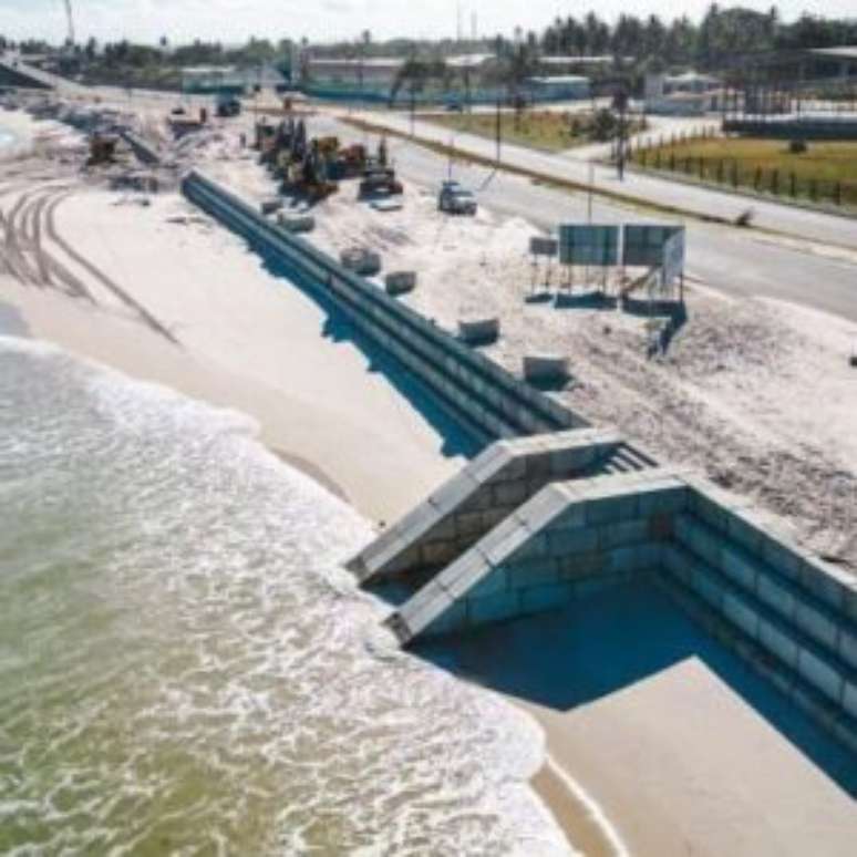 Muro subterrâneo de 6 km reforça proteção em praia famosa para conter erosão