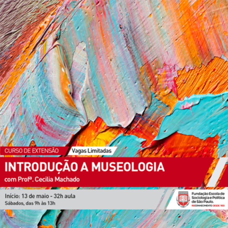 A FESPSP (Fundação Escola de Sociologia e Política de São Paulo) oferece, a partir do dia 13 de maio de 2017, o curso de extensão Introdução à Museologia, ministrado pela historiadora e museóloga Cecilia Machado. "O curso se propõe a instrumentalizar o aluno para atuar no campo da museologia, para auxiliar tecnicamente os trabalhos de pesquisa, preservação e difusão de acervos de caráter artístico, histórico, científico e de outras naturezas e instituições correlatas, de natureza pública ou privada, de forma responsável e ética, seguindo as diretrizes e resoluções estabelecidas", explica a docente.