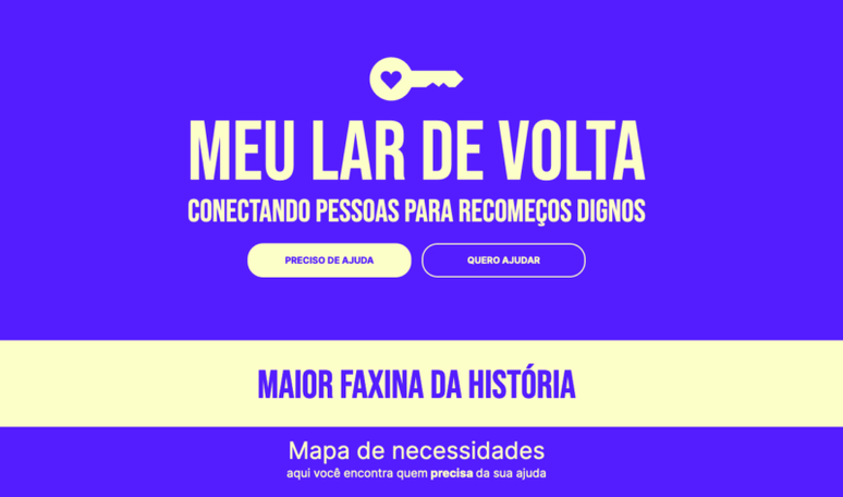 O "Meu Lar de Volta" oferece um mapa interativo que permite visualizar em tempo real as necessidades de cada localidade afetada pelas enchentes.