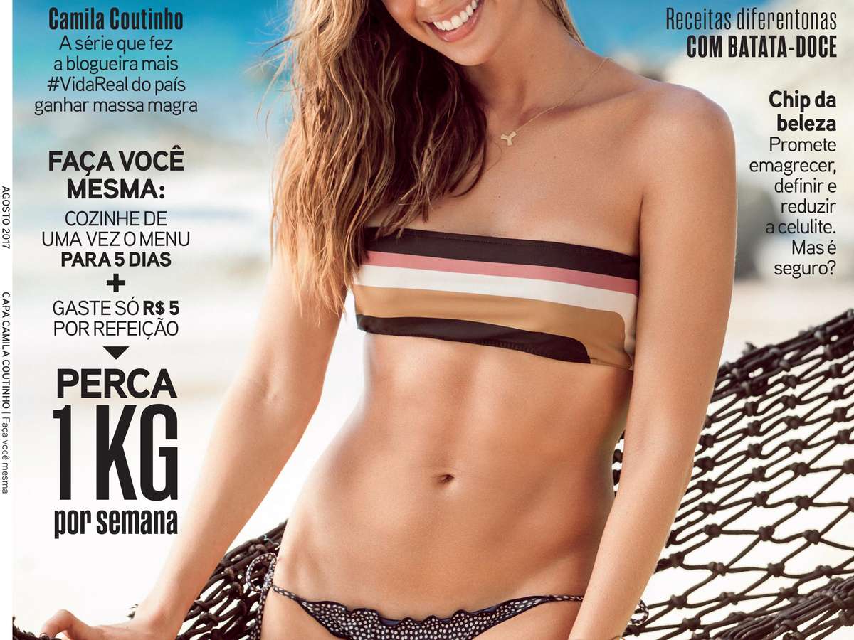 Usando a própria foto de inspiração, mas sem mirar em um corpo-modelo, Camila Coutinho mudou seus hábitos para melhorar o corpo e a alimentação. A influencer, estrela de capa da Boa Forma de agosto, integrante do portfólio de revistas femininas do Grupo Abril, explica como atingiu o que ela considera sua melhor versão. "Não adiantava mirar em um corpo que não era meu, eu só queria me sentir melhor com o que já tinha", afirma. Após falar com o seu personal trainer e procurar uma nutricionista e uma dermatologista, o resultado foi positivo: reduziu a gordura das pernas e quadril, sem precisar emagrecer no colo, onde já era pequena.