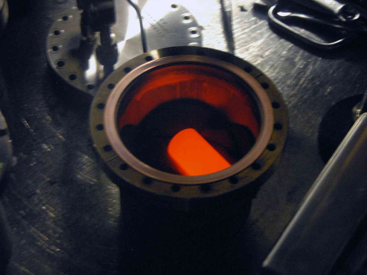 A energia nuclear no espaço não é novidade - algumas naves espaciais são movidas a energia nuclear. Esta foto mostra a fonte de calor nuclear do rover Mars Curiosity envolto em uma carcaça de grafite. O combustível fica incandescente devido ao decaimento radioativo do plutônio-238. Idaho National Laboratory, CC BY