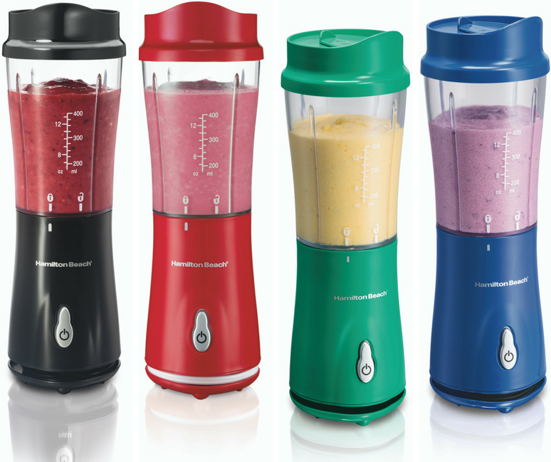 4. Liquidificador Individual (vermelho, azul e verde): A tampa da jarra permite que você beba no recipiente e também pode levado para onde quiser. Feito com material leve e resistente a manchas, estilhaços e odores. Jarra feita de Tritan™ - material livre de BPA (bisfenol-A). Versatilidade no preparo de vitaminas e bebidas geladas. Garantia de três anos. Disponível, nas cores vermelho, azul e verde, além da cor preta.