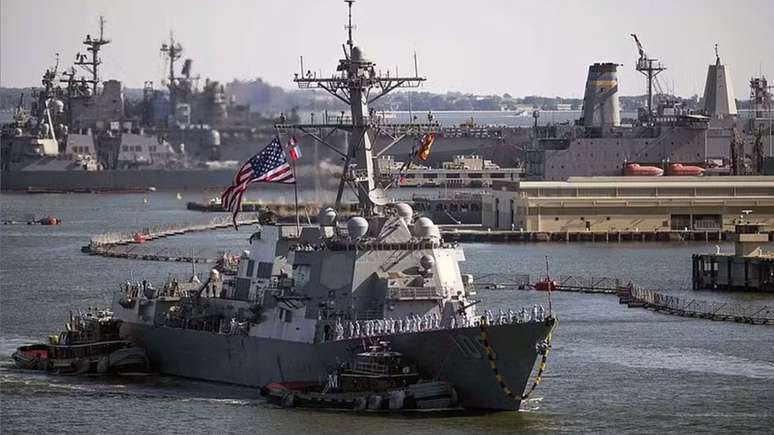 A embarcação dos EUA está posicionada no sul do Caribe em missão contra o tráfico internacional de drogas. Além do destróier, a operação envolve outros navios de guerra e um submarino nuclear. Analistas avaliam que a estratégia pode incluir pressões diretas sobre o governo venezuelano.