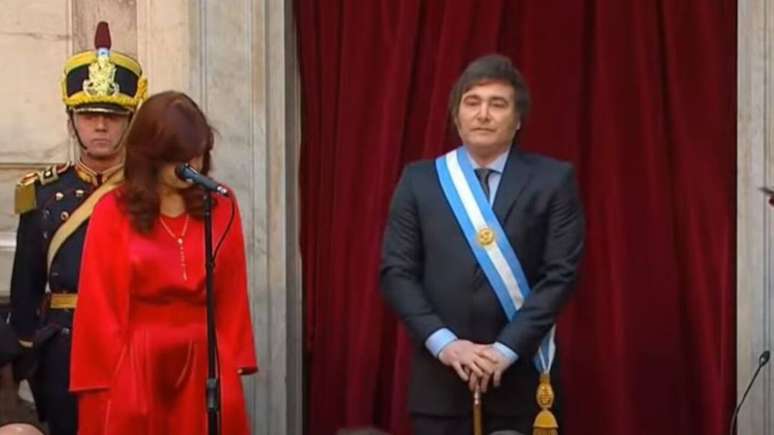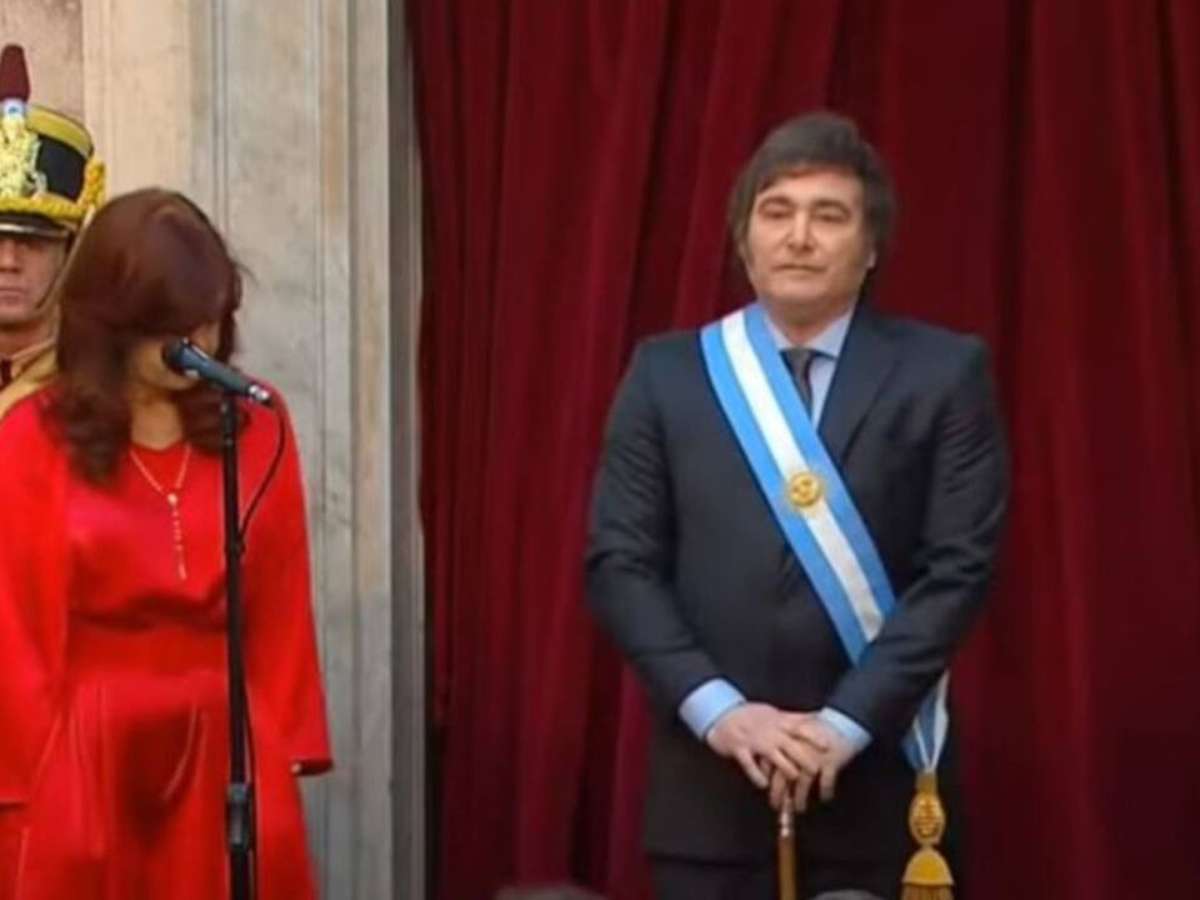 Javier Milei fez discurso do lado de fora do Congresso, ao som da música Panic Show, de La Renga."Hoje iniciamos a reconstrução do nosso país". Milei afirmou que "os argentinos expressaram vigorosamente uma vontade de mudança que não tem retorno. Não há como voltar atrás, enterramos décadas de fracassos e disputas sem sentido."